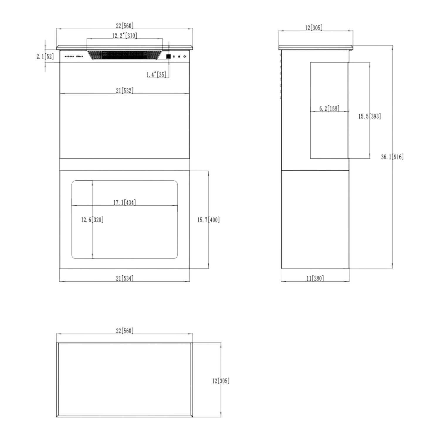 - Mitat: 56 × 91,6 × 30,5 cm (22" × 36" × 12")