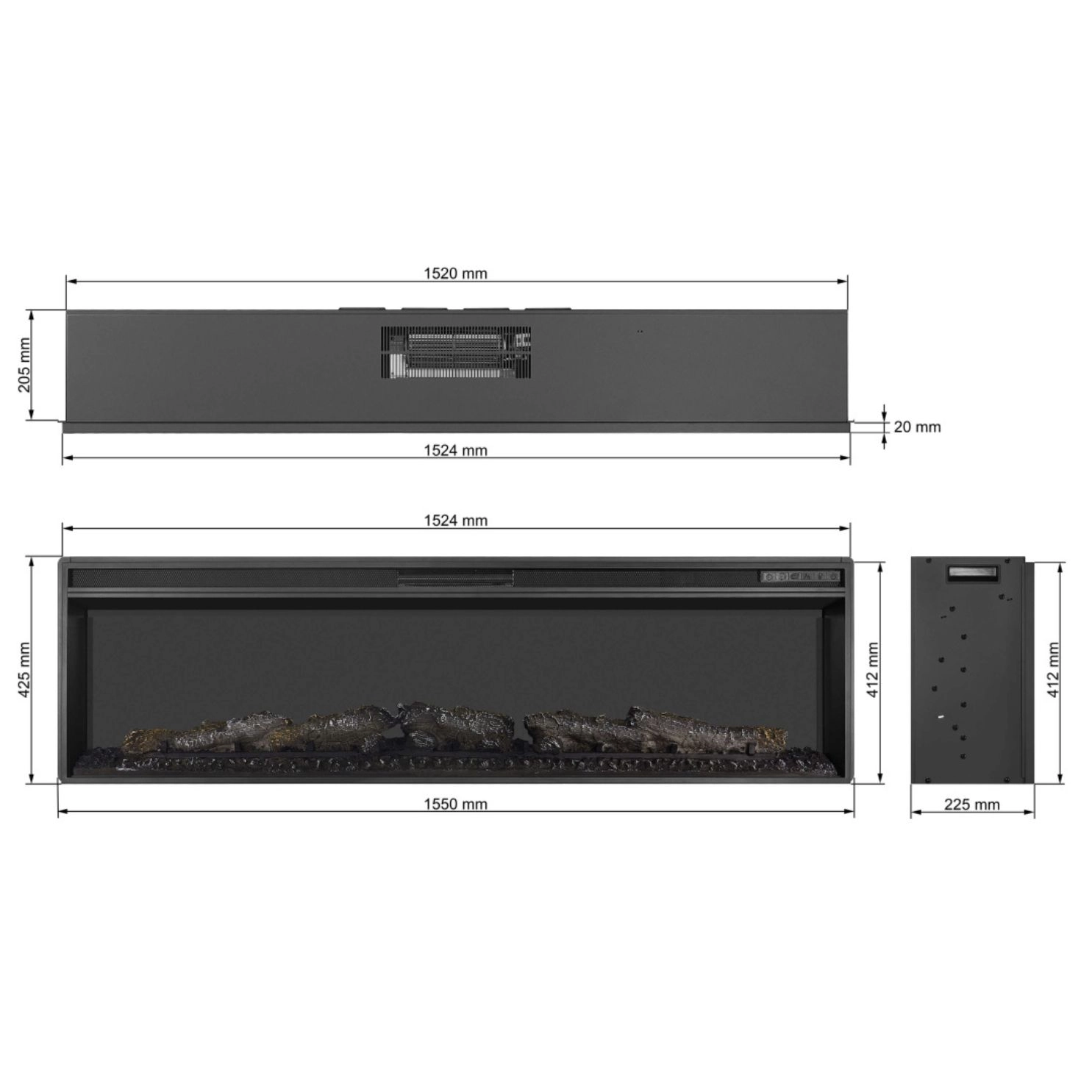 Tuote on mitoiltaan 155 cm leveä, 42,5 cm korkea ja 22,5 cm syvä. Se on valmistettu ruostumattomasta teräksestä ja karkaistusta lasista, mikä varmistaa sekä kestävyyden että elegantin ulkonäön.